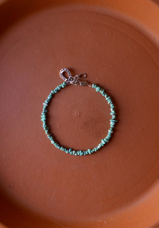 Kingman Turquoise Chip Beaded Bracelet with Charm