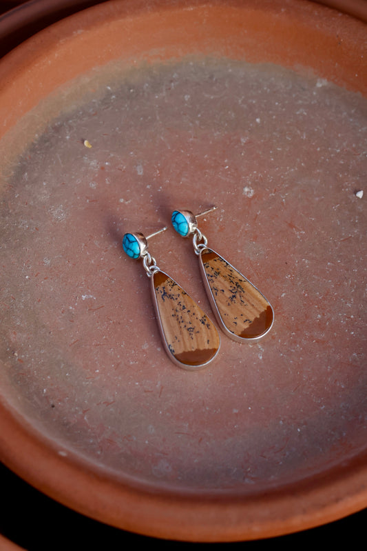 Kingman Turquoise and Picture Jasper Earrings