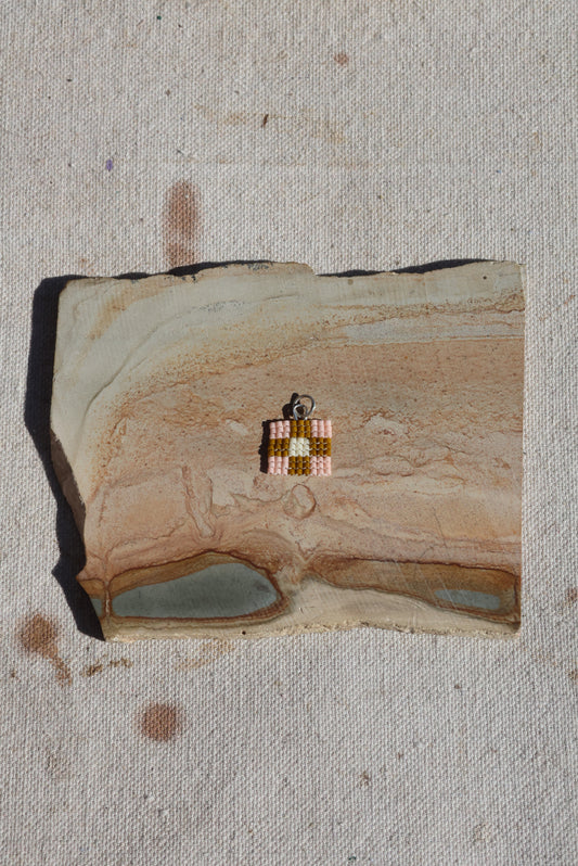 Nine Patch Quilt Seed Bead Charm