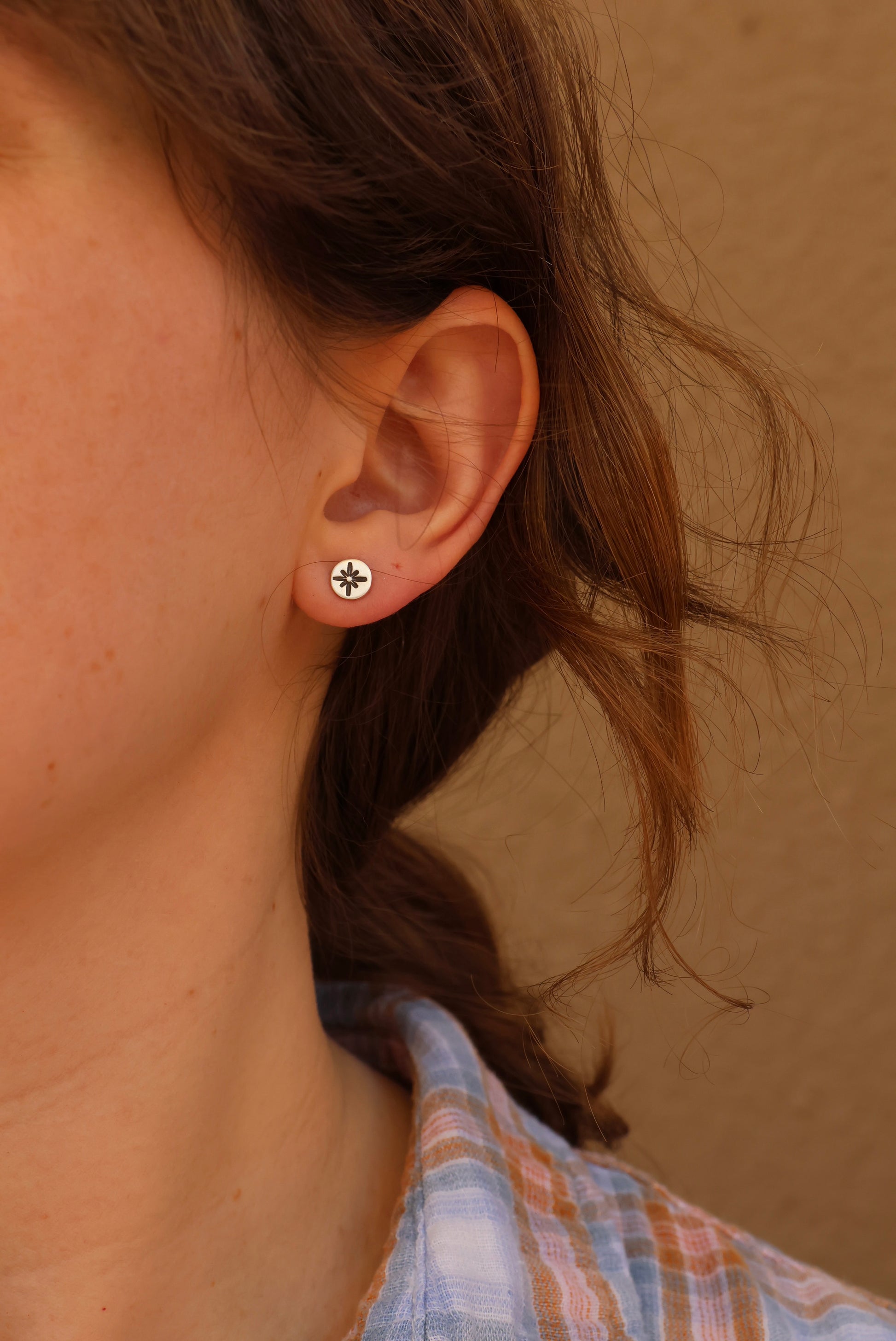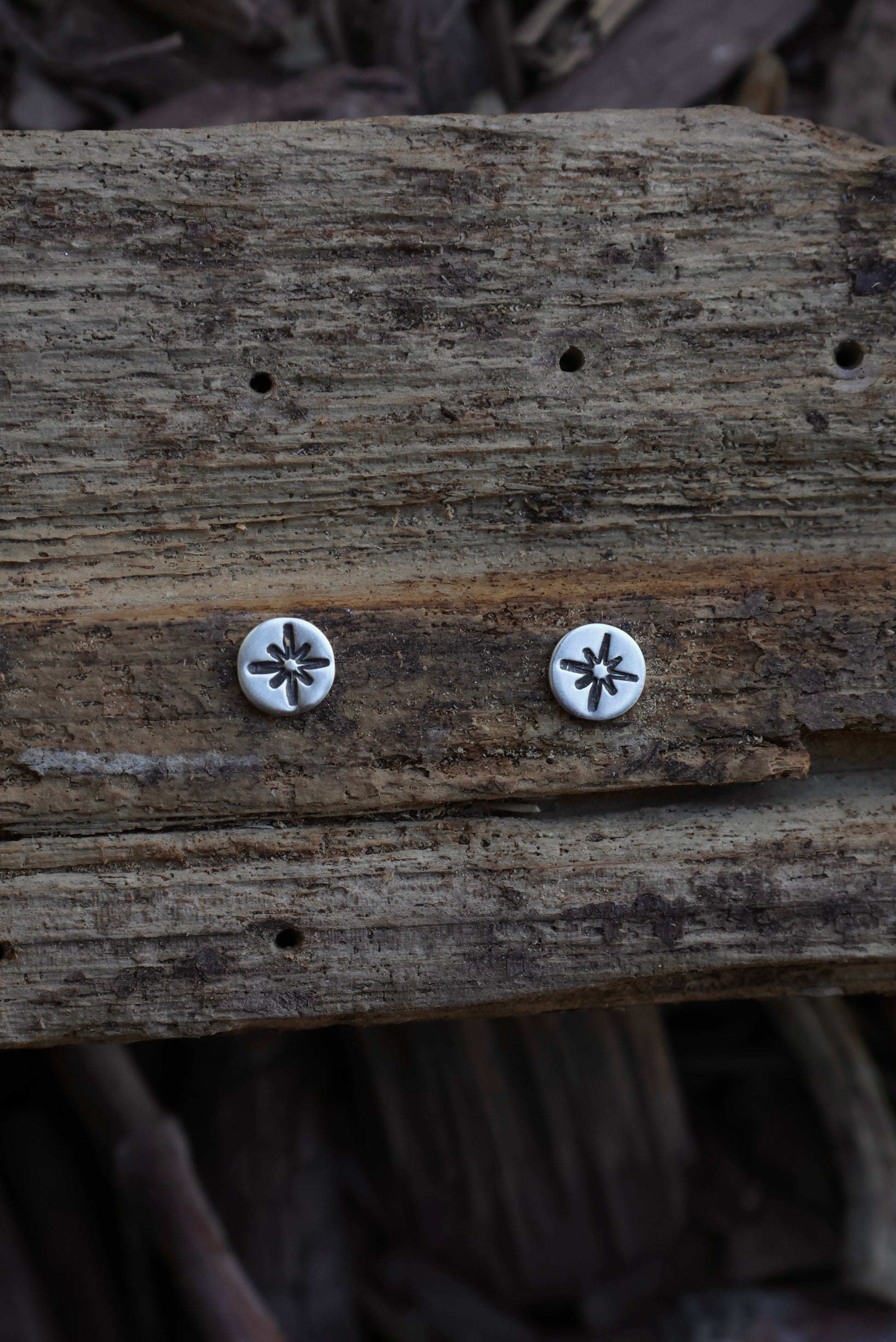6mm sterling silver hand stamped stud earrings with sterling silver backings.