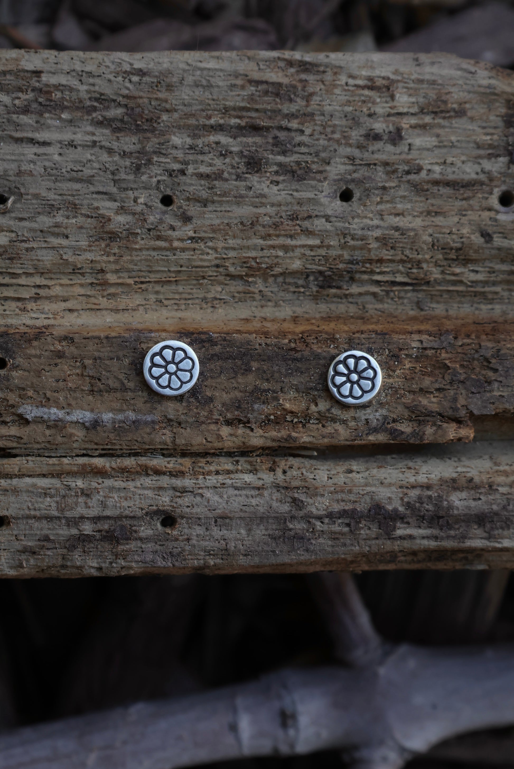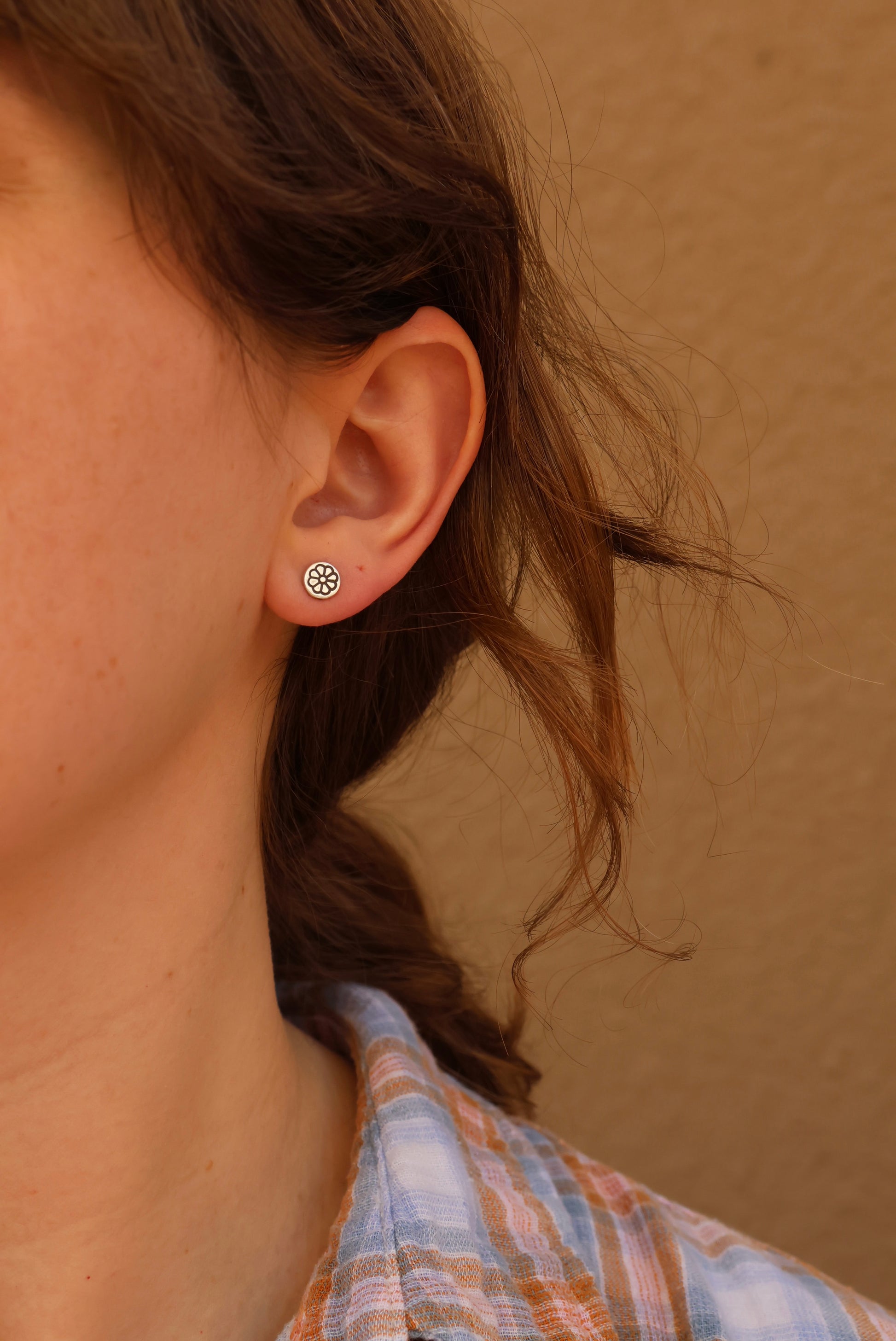 6mm sterling silver hand stamped stud earrings with sterling silver backings.