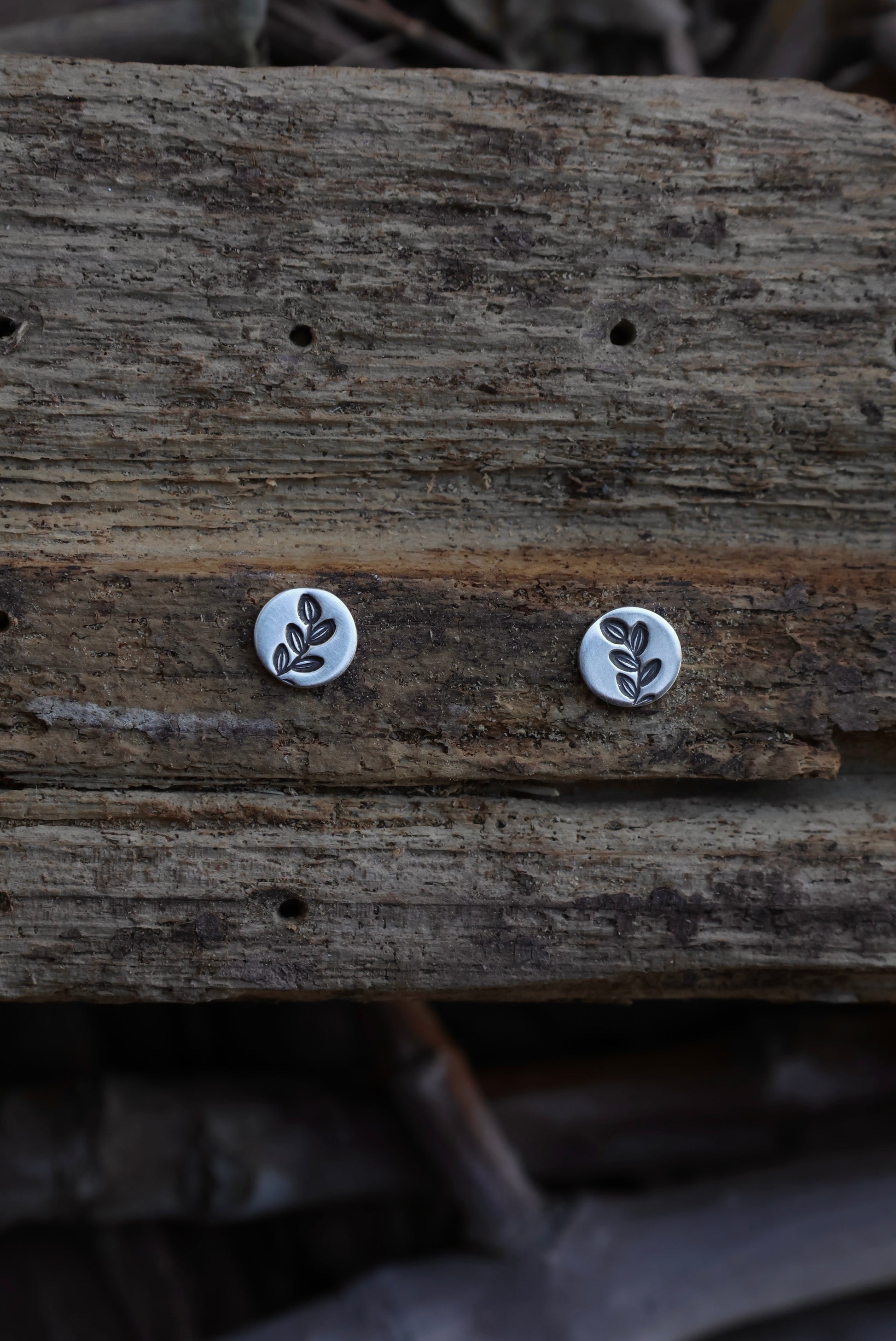 6mm sterling silver hand stamped stud earrings with sterling silver backings.