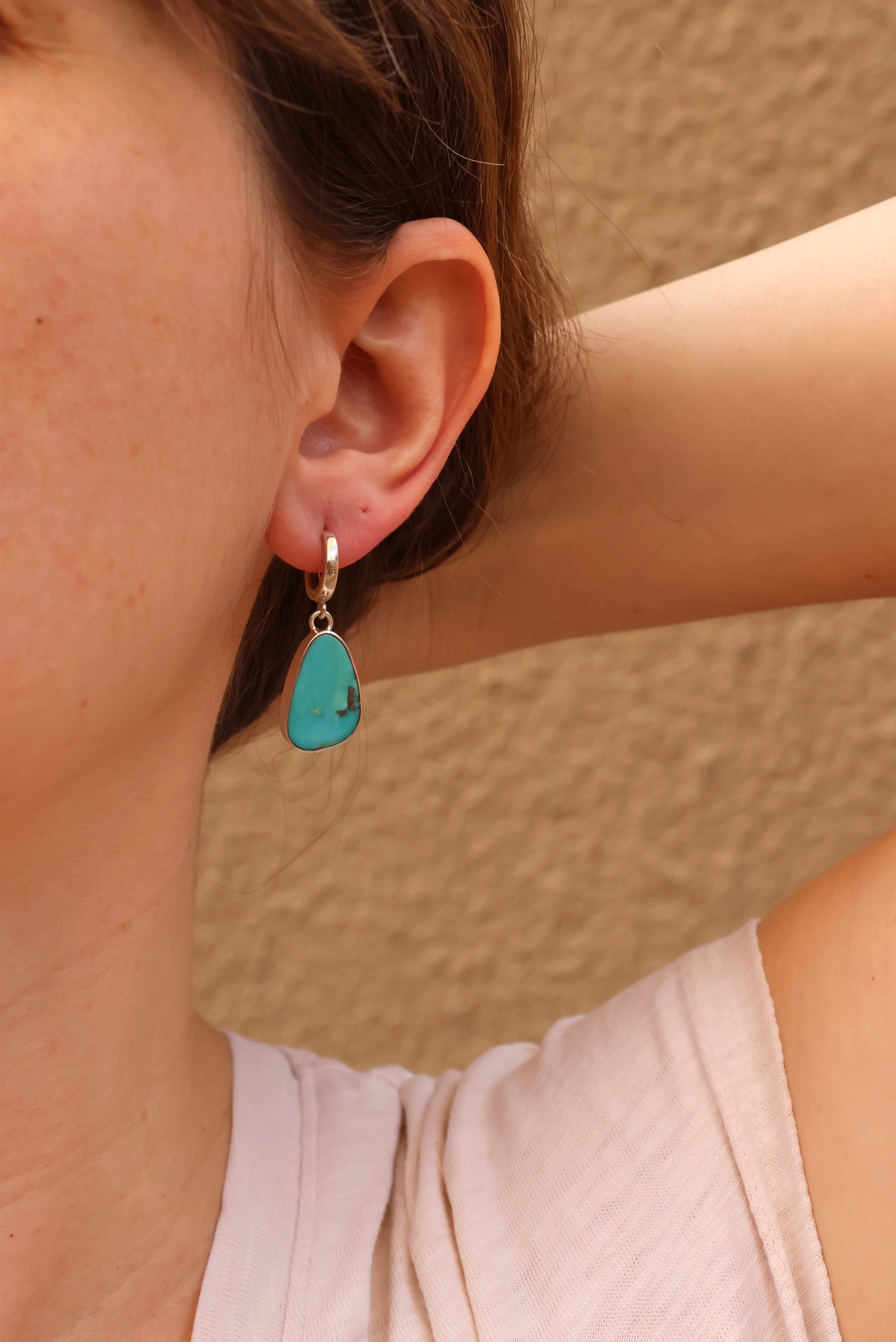 Kingman Turquoise Huggie Hoop Dangly Earrings