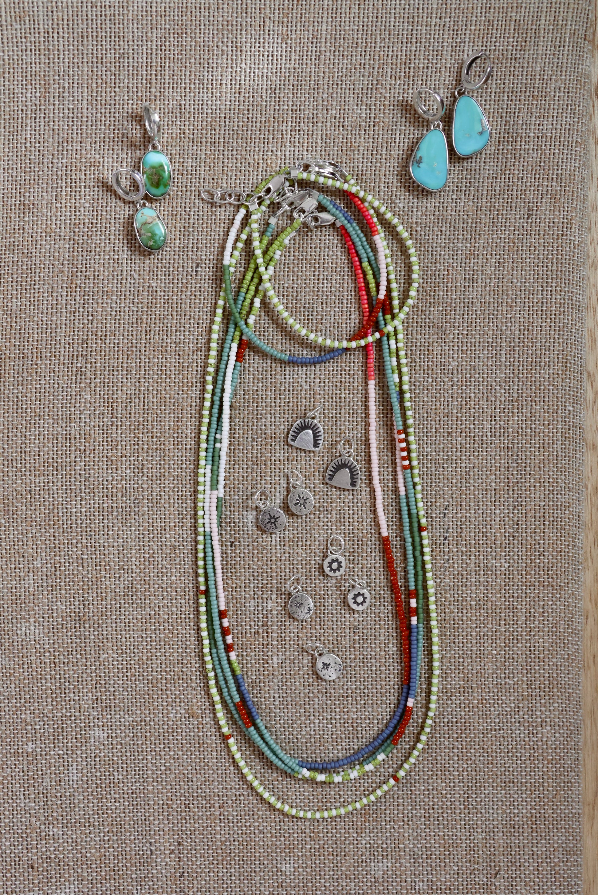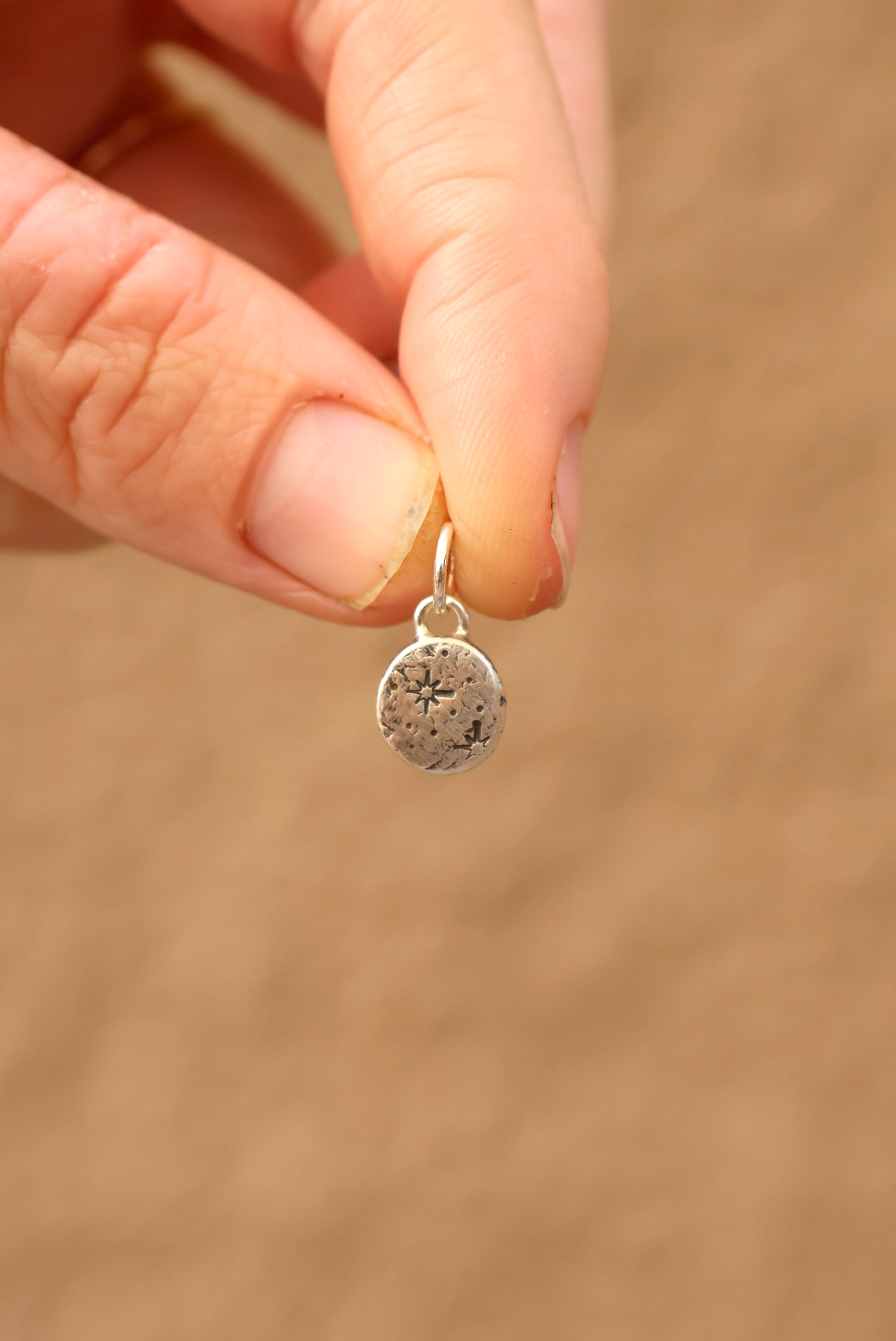 A hand fabricated sterling silver charm stamped with small stars. Made from recycled silver, milled in Allison's studio. A perfect addition to a seed bead necklace, a silver chain, or the charm holder necklace!